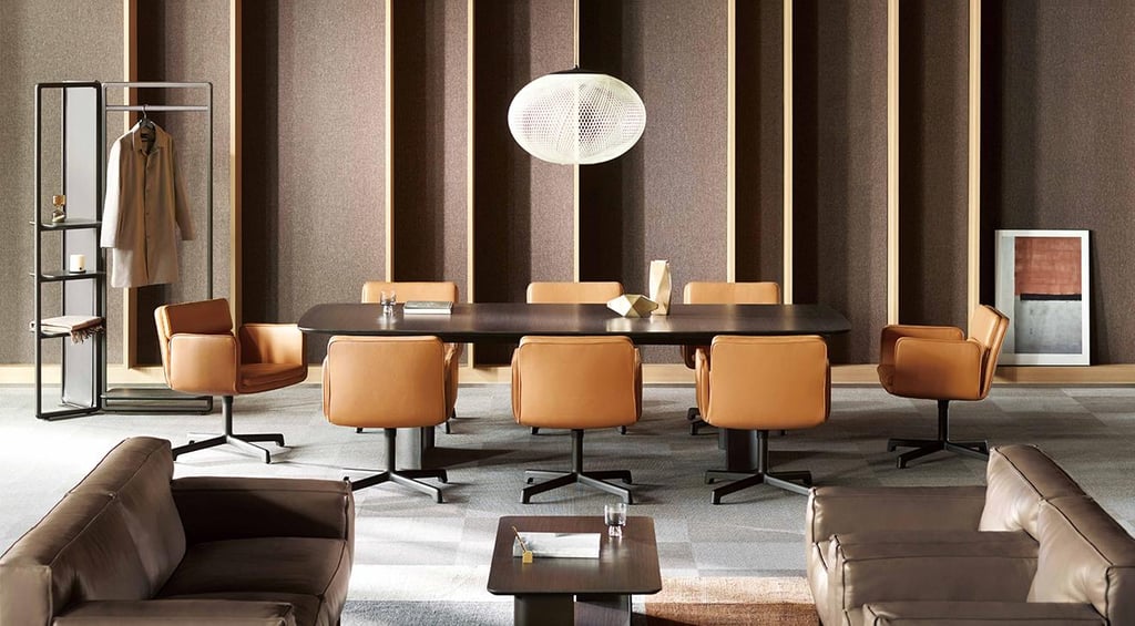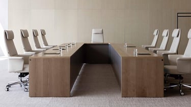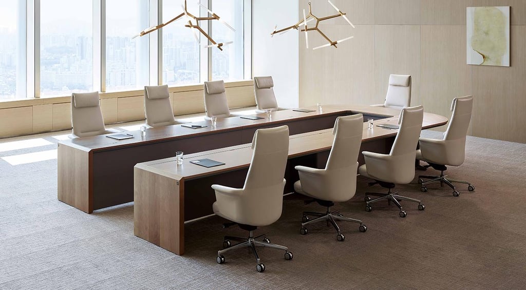 With its simple and refined design, this premium conference table is ideal for executive business meeting spaces or premium lounges.