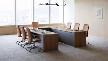 CRX series is a premium standard-to-large sized conference table system. It creates a unique space for the leaders of today. Finest quality table units with an Italian patterned wood finish can be combined in a variety of ways to create a number of conference layouts.