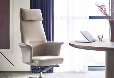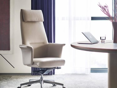 The CELIOS series, which is slim and yet maintains its luxury,has a soft and sophisticated curved line design that connects the back and armrests. It is an executive chair that lights up the casual and modern executive space, away from the feeling of authority.