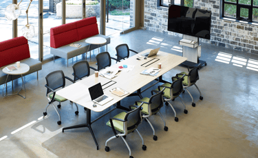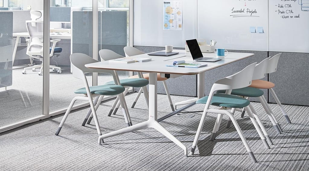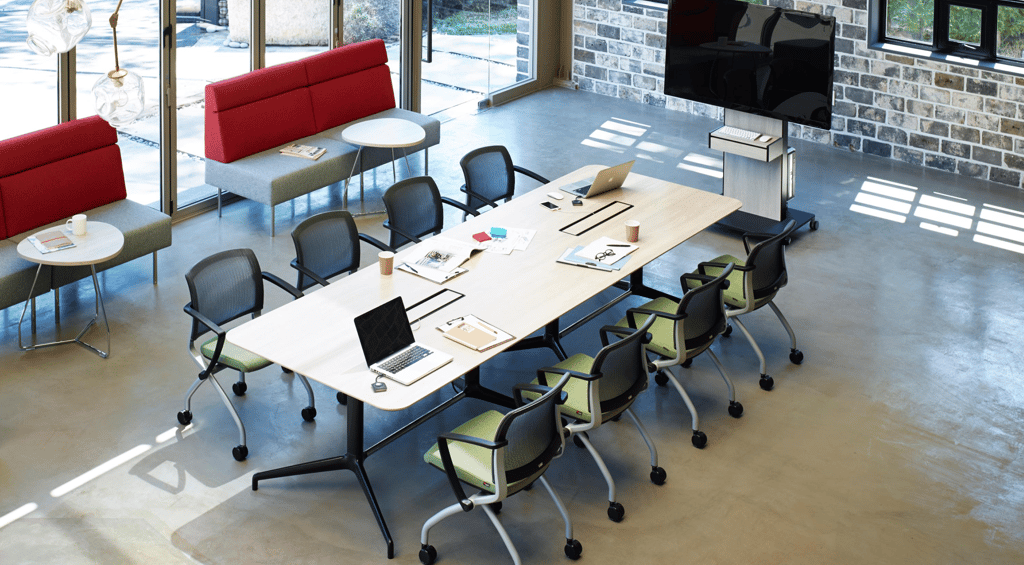 BECONN's simple design and compact size create a variety of collaborative spaces. With display equipment and a convenient wiring system, it facilitates effective collaboration using IT devices.