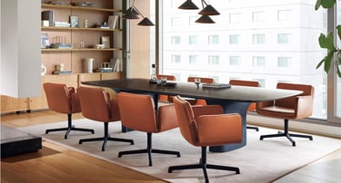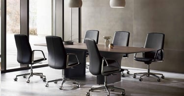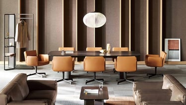 With its simple and refined design, this premium conference table is ideal for executive business meeting spaces or premium lounges.