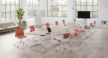 CRX, a combination table for medium to large conferences, combines table units finished with premium wood grain to create a variety of meeting spaces.