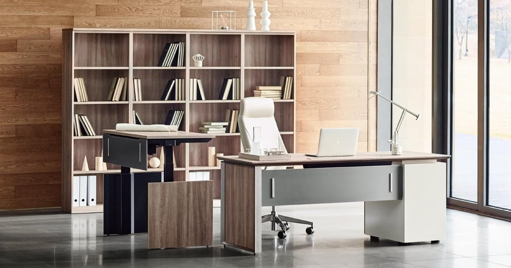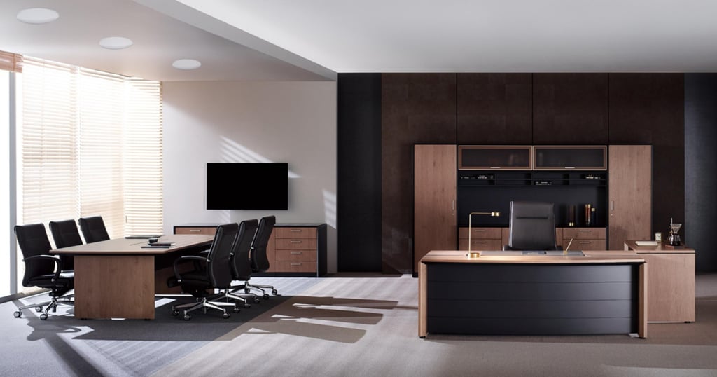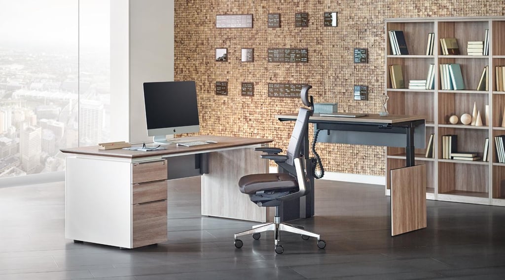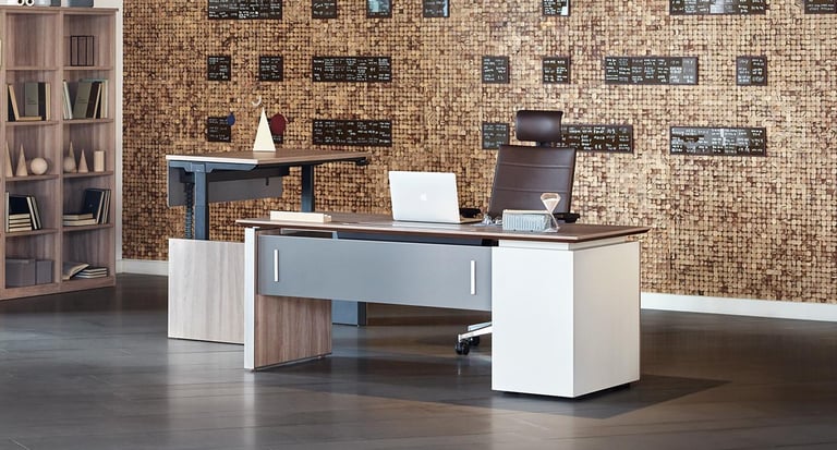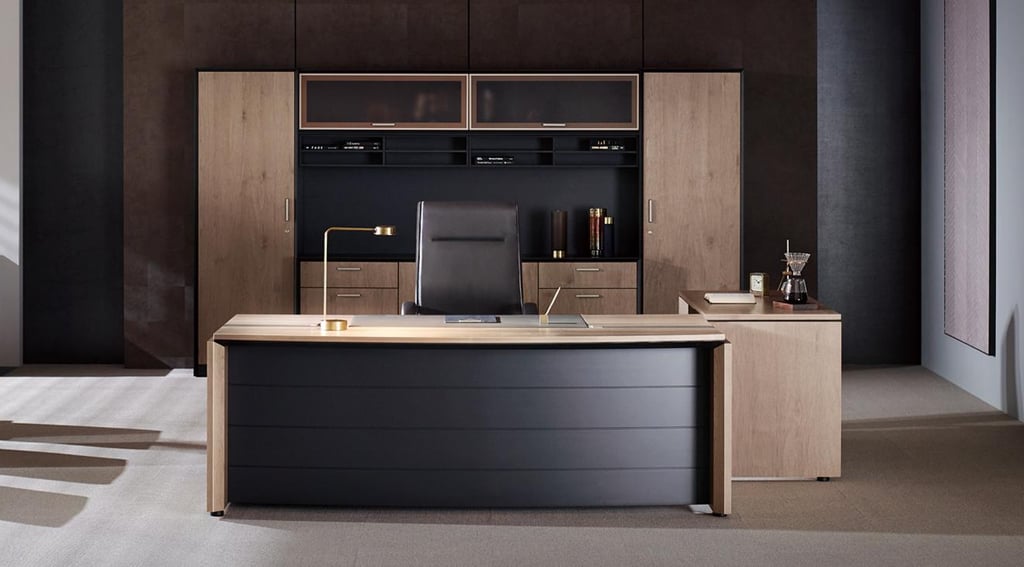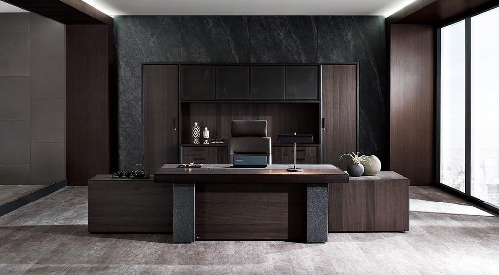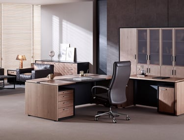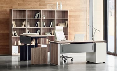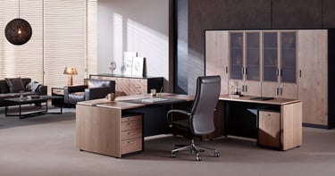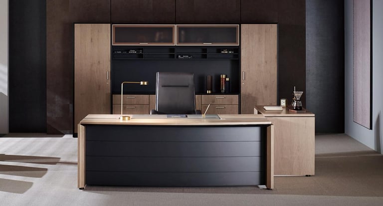 The CEOS Executive Desk adds sophistication with its luxurious natural wood grain and bold front panel design.