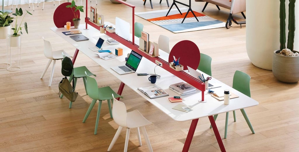Weyard is a hybrid work environment. Optimized for workspaces and featuring wiring, this worktable is ideal for a variety of spaces, including offices and lounges.