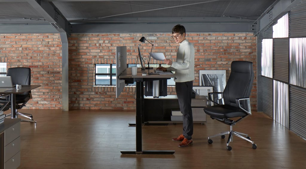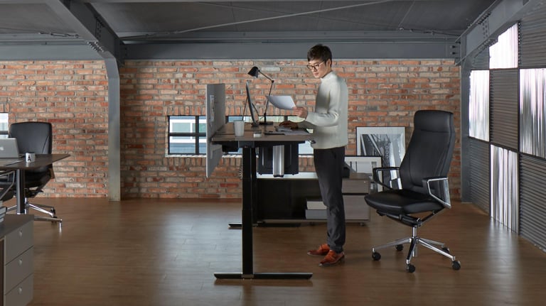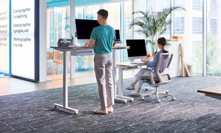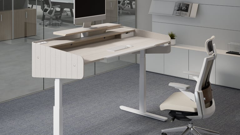 The MotionDesk M302+ allows for flexible height adjustments to suit individual body types and work environments, maximizing work efficiency and facilitating convenient use of electronic devices