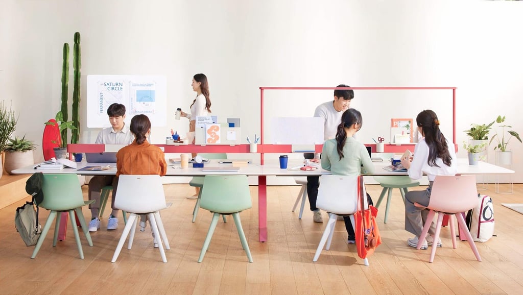 WEYARD, supporting a variety of office activities, boasts a high level of completeness. The large table lineup consists of two types: a work table and a lounge table, with variations in design and functionality. Depending on your work style and office mood, it can be used in a variety of spaces, including workspaces, work lounges, and cafeterias.